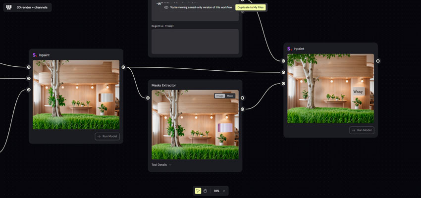 Esta lógica resulta especialmente útil en contextos de arquitectura y visualización arquitectónica, donde cada imagen responde a criterios técnicos, estéticos y funcionales. Weavy permite a arquitectos construir sistemas visuales adaptados a sus proyectos: desde propuestas conceptuales hasta renders de alto impacto, todo dentro de una misma lógica de control y edición escalable.
